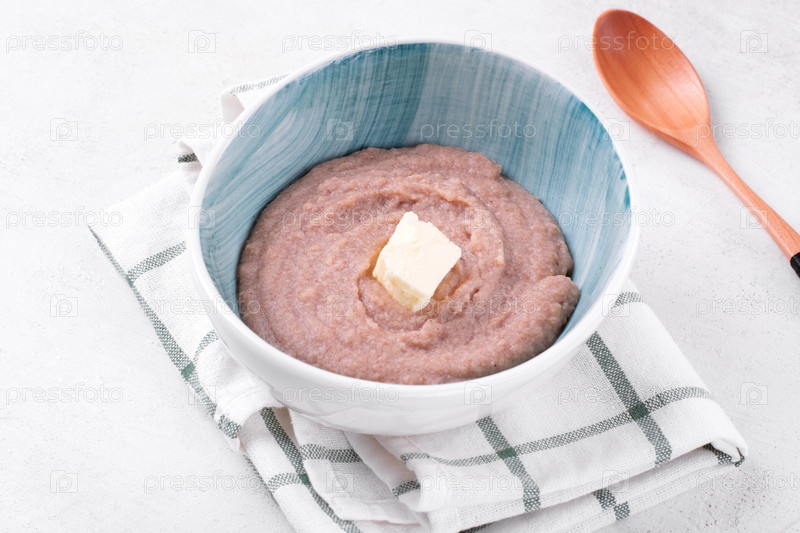 Сливочная полбяная каша с маслом подается в миске. Здоровый завтрак