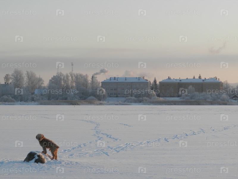 Мой пес Фоксик на фоне озера Росцо и город Новоржев