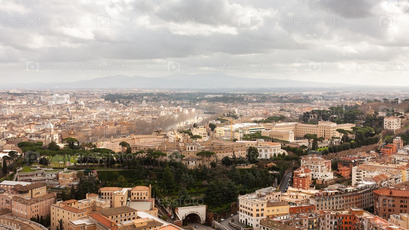 Вид с воздуха на Рим в пасмурную погоду, Европа