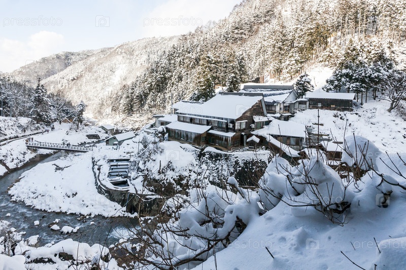 Японская деревня Юданака зимой, префектура Нагано, Япония