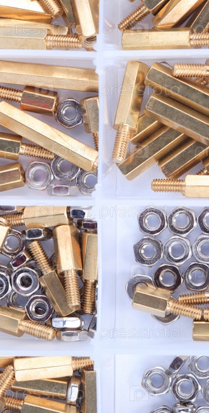 Набор латунных прокладок с наружной и внутренней резьбой в пластиковом контейнере