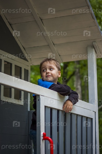 Ребенок играет на площадке в детском доме. Выдает себя за хозяина дома. Портрет ребенка
