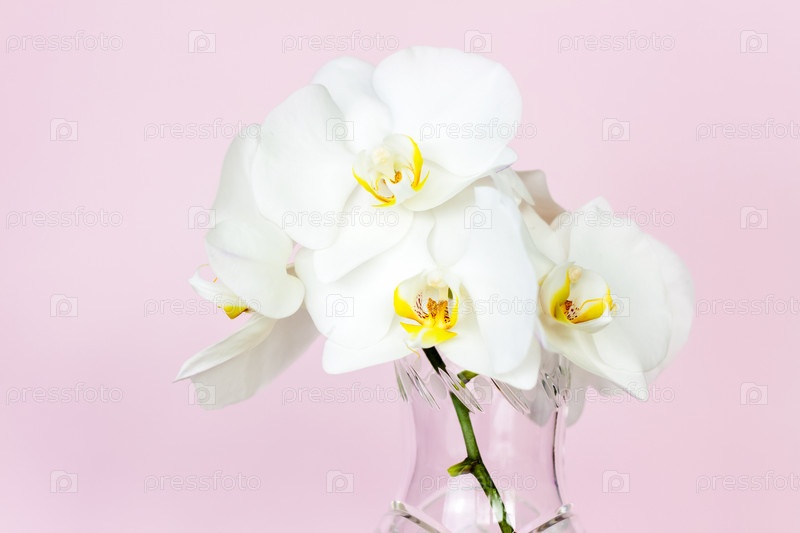 Красивые орхидеи в вазе на розовом фоне. фаленопсис крупным планом. Баннер, панорама с местом для текста