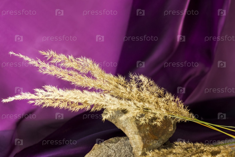 Пампасная трава на цветном фоне. пушистая веточка. Фон для рекламы и презентации