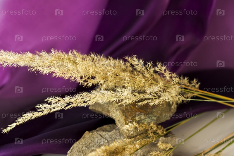 Пампасная трава на цветном фоне. пушистая веточка. Фон для рекламы и презентации