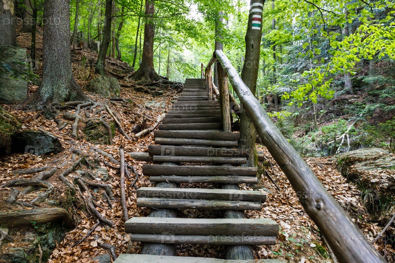 Деревянная пешеходная дорожка у водопадов Ресов в Чехии