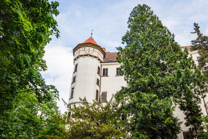 Средневековый замок Конопиште - резиденция императорской семьи Габсбургов в окружении деревьев