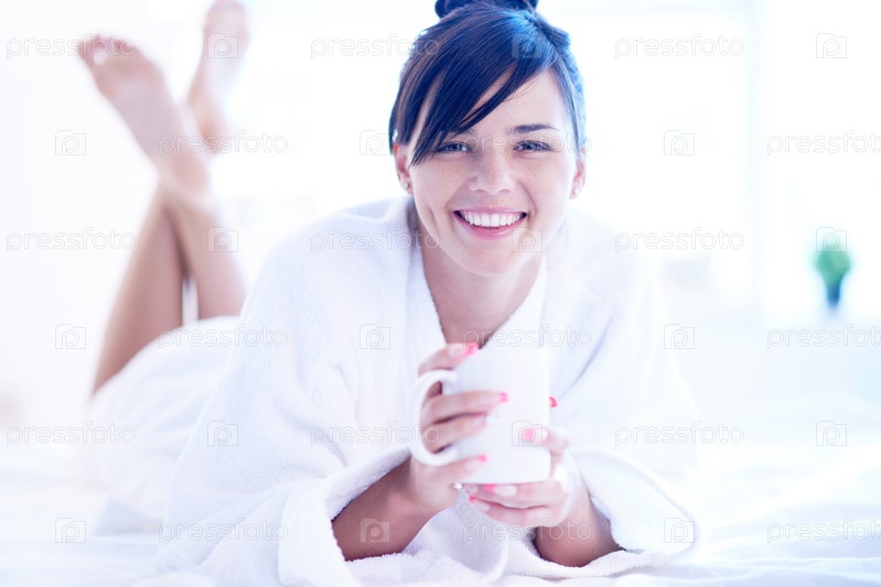 Девушка пьет кофе с утра