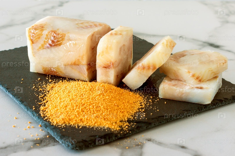 Замороженное филе рыбы Пангасиус на каменной доске готово к приготовлению