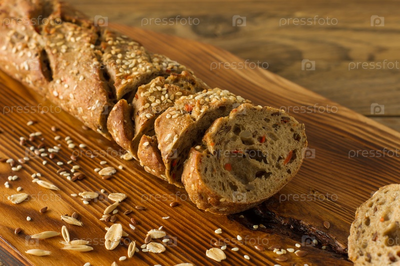 Веганский хлеб без глютена и без продуктов животного происхождения. Вегетарианский хлеб с овсянкой, банановым вкусом, на деревянном деревенском столе, нарезанный и готовый к подаче