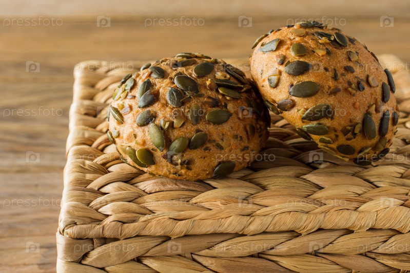 Домашние безглютеновые веганские тыквенные лепешки с семенами на деревянном столе