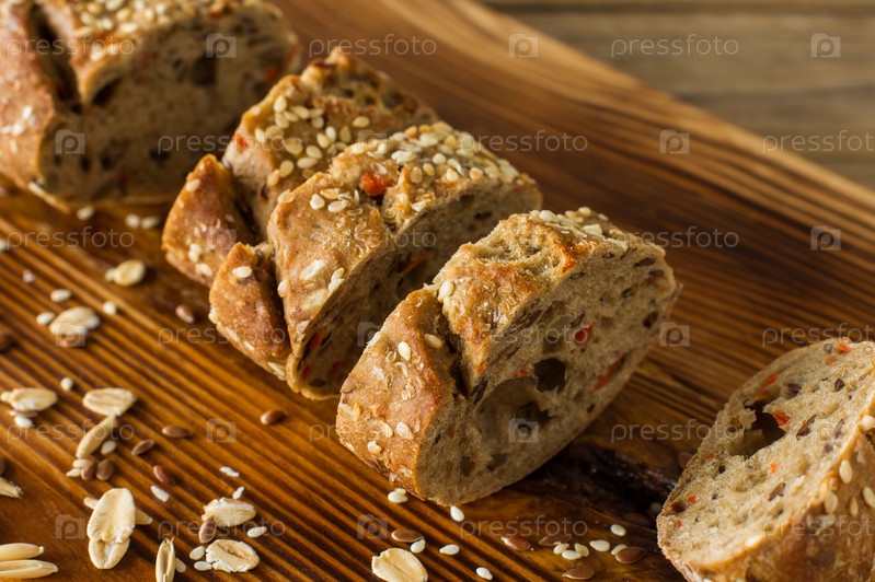 Веганский хлеб без глютена и без продуктов животного происхождения. Вегетарианский хлеб с овсянкой, банановым вкусом, на деревянном деревенском столе, нарезанный и готовый к подаче