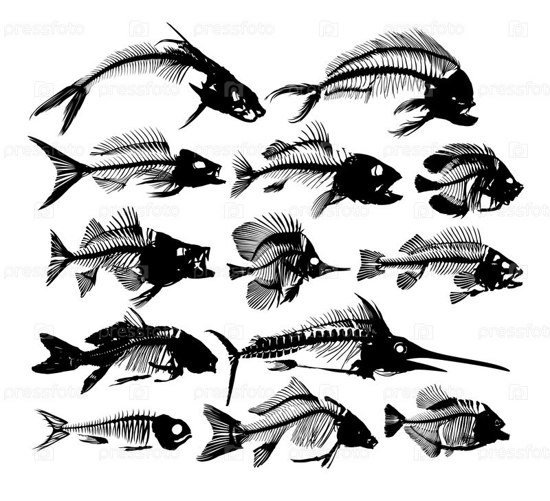Набор скелетов хищных морских рыб