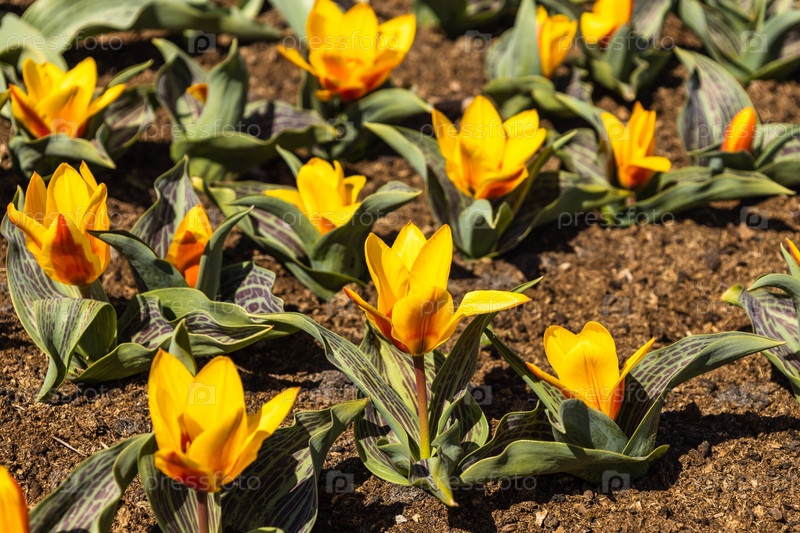 Желтые цветы тюльпана растут и цветут в ботаническом саду