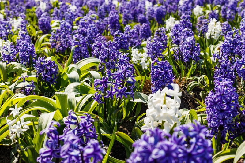 Синие и белые цветы растут и цветут в ботаническом саду