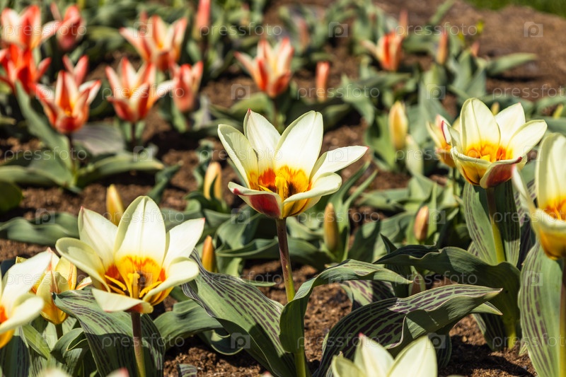 Тюльпаны - цветы Мэри Энн растут и цветут в ботаническом саду