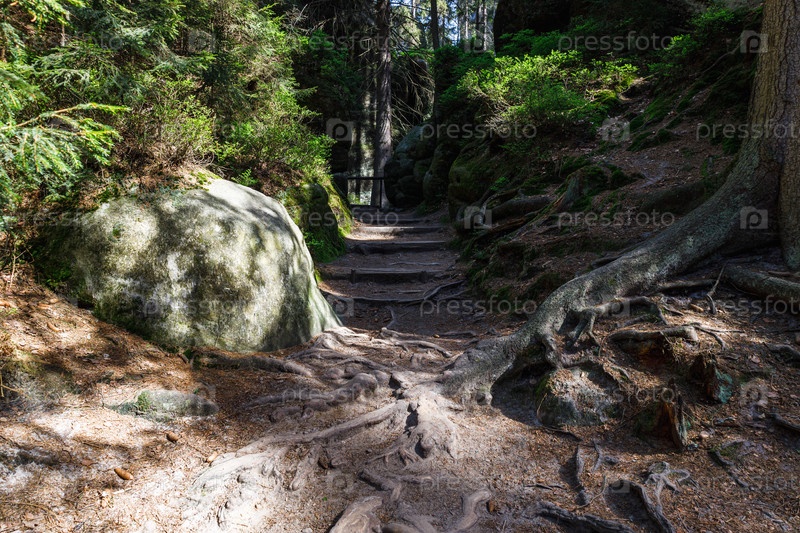 Путь между песчаными образованиями в Adrspach Rocks, Чехия