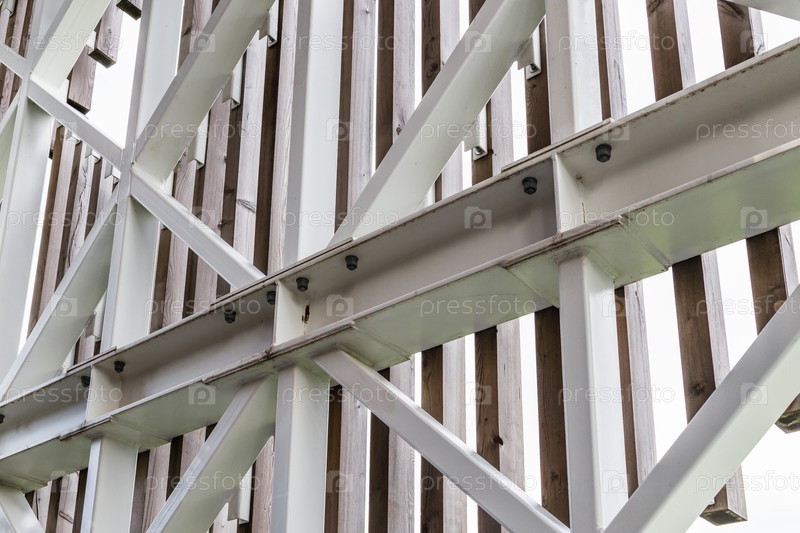 Массивные стальные балки встык с болтами и гайками на конструкции