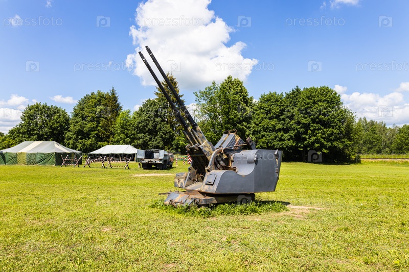 Сверхтяжелые старые зенитные орудия в музее под открытым небом. Кентшин, Польша, 11 июня 2022 г
