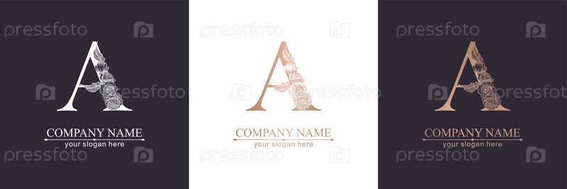 Буква А логотип или монограмм. Цветочный стиль, красивые розы. Персональный логотип