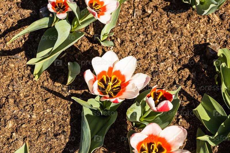 Тюльпан - цветы Ancilla растут и цветят в ботаническом саду