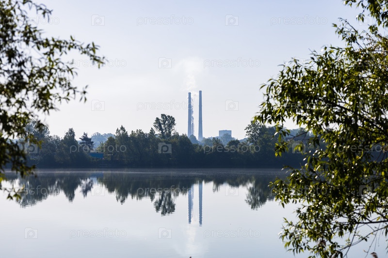 Энергетический завод с полосатыми трубами дымохода
