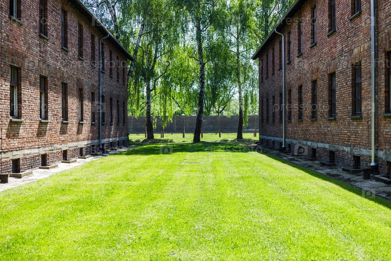 Здания концентрационного лагеря Освенцим-Биркенау. Мемориал Холокоста. Освенцим, Польша, 16 мая 2022 г