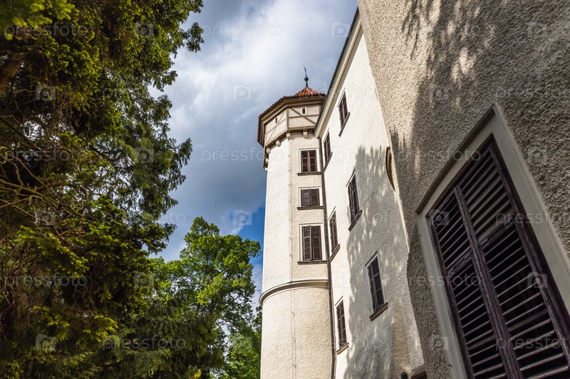 Средневековый замок Конопиште - резиденция императорской семьи Габсбургов в окружении деревьев