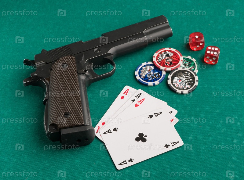 Азартный покер, крупным планом, пистолет
