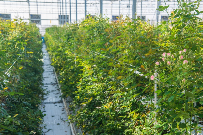 Оранжерея с розовыми цветами
