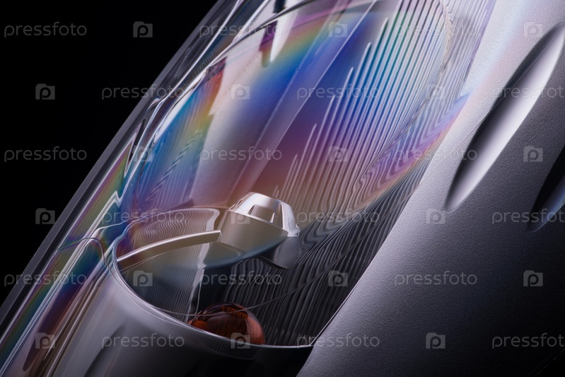 Фара автомобиля на черном фоне