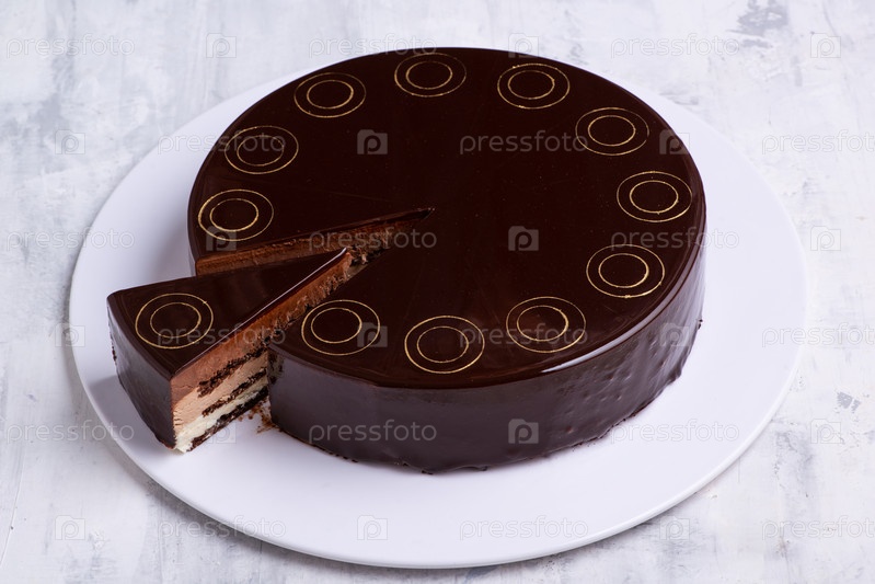 Шоколадный торт на белой тарелке, вид сверху
