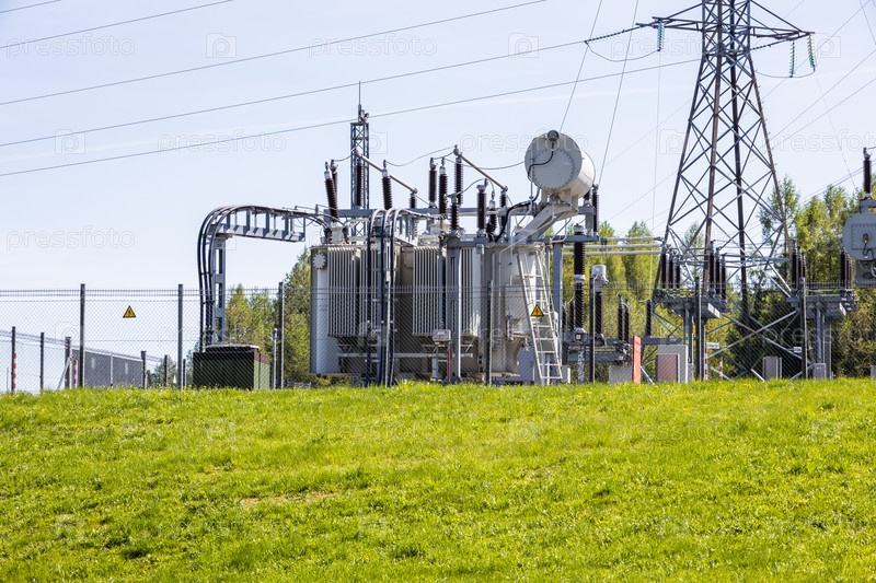 Высоковольтные электрические опоры, линии электропередач, кабели на трансформаторах и распределительные подстанции