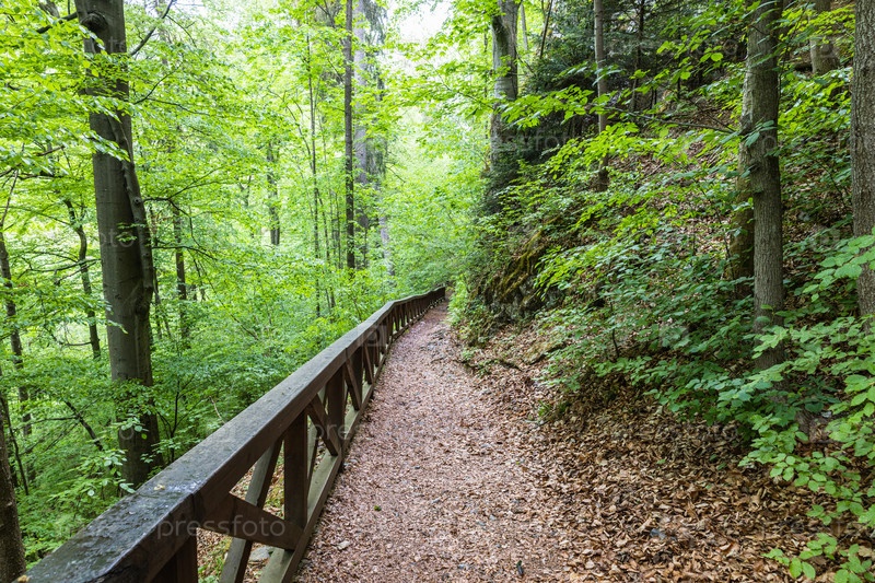 Тропинка, покрытая листвой осенью, возле пещер Пунква в Моравском Красе, Чехия