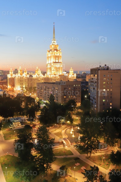 Пейзаж ночной Москвы с крыши в районе Киевского вокзала