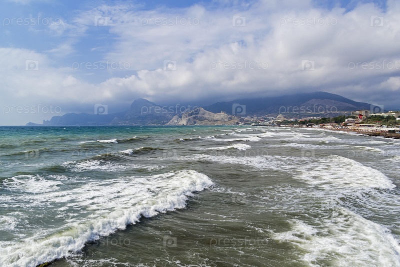 Облака над морской бухтой. Крым, курортный город Судак, сентябрь