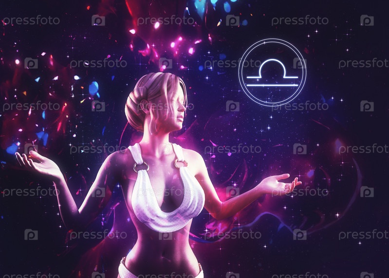 Девушка-Весы в древнегреческом наряде в космосе