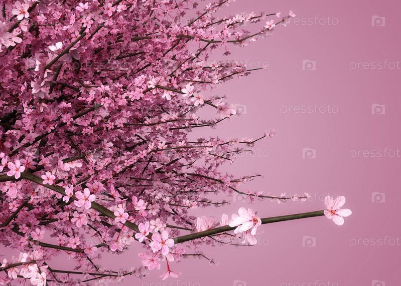 3D ветви сакуры в розовом цвете