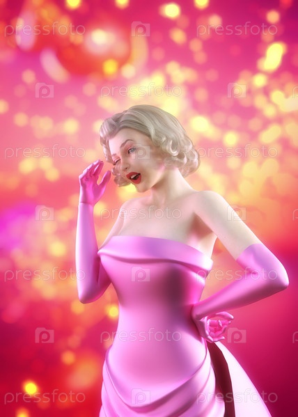 Блондинка в розовом платье боке огни