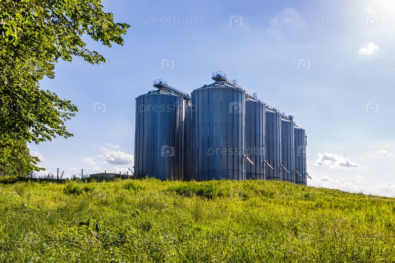 Сельскохозяйственные силосы амбарная башня. Большие железные бочки с зерном