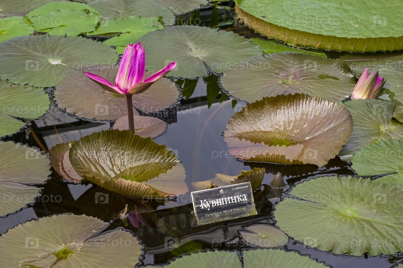 Цветущая тропическая кувшинка "Черная принцесса" в оранжерее Аптекарского огорода (филиал ботанического сада МГУ, Москва)