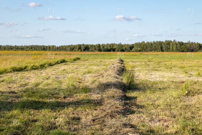 Поле с сеном, прекрасный ясный летний день. Тульская область, Россия