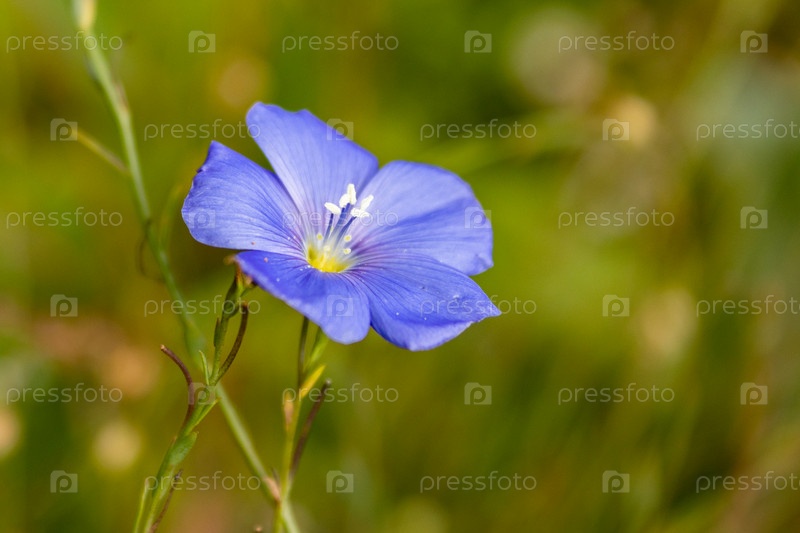 Голубые цветы льна на клумбе, лето, крупный план