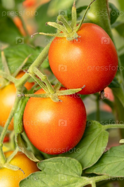 Спелые помидоры растут в теплице. Вкусные красные помидоры. крупным планом