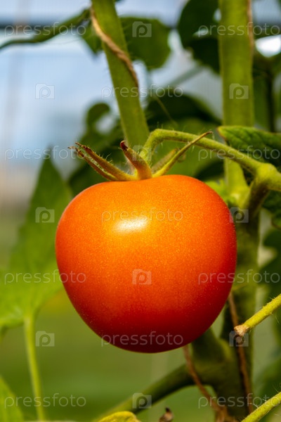 Спелые помидоры растут в теплице. Вкусные красные помидоры. крупным планом