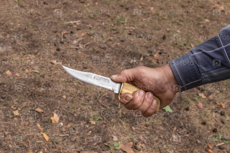 Человеческая рука держит охотничий нож, угрозу, насилие, жестокость