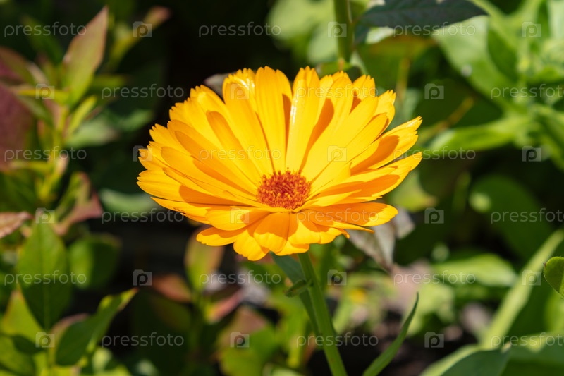 Календула яркая полевая, бархатцы, лекарственный цветок календулы. крупным планом