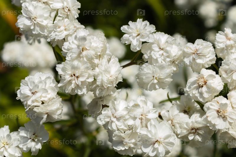 Achillea ptarmica ballerina много белых цветов с зелеными листьями. На участке обильно цветёт. Тульская область, Россия