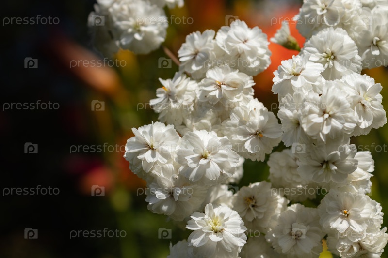 Achillea ptarmica ballerina много белых цветов с зелеными листьями. На участке обильно цветёт. Тульская область, Россия