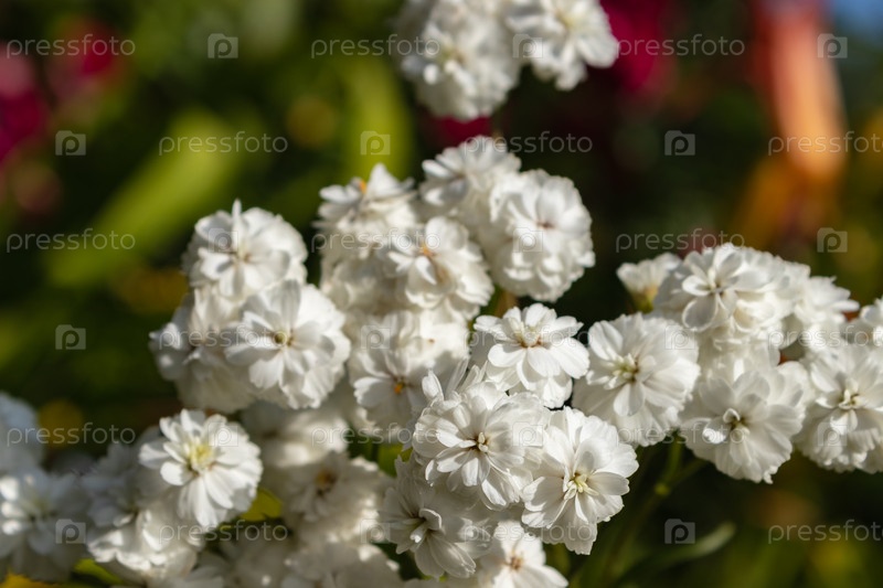 Achillea ptarmica ballerina много белых цветов с зелеными листьями. На участке обильно цветёт. Тульская область, Россия